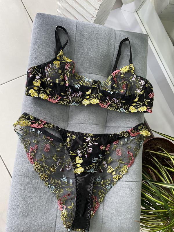 Зроблено в Україні?:Производство ,Модель трусиков:Бразилиана ,Стиль:Романтический ,Посадка:Высокая ,Декор:Вышивка , Сеточка ,Вид комплекта:С бюстгальтером ,Принт:Цветочный , - Shipping