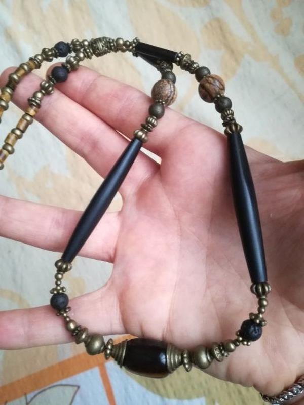 Высококачественное мужское украшение (чокер) на шею ( сила, уверенность и достаток) .Новое без коробки.Полная длина 56 см .Тигровый глаз , лавовый камень,яшма(пейзажная), кость, фурнитура античная бронза .Сочетание элементов и полезные (лечебные,магические, энергетические) свойства для обладателя можно найти в интернете.
