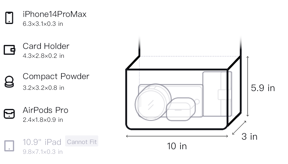 - Size:L*W*H: 5.9*3.0*10.0 in