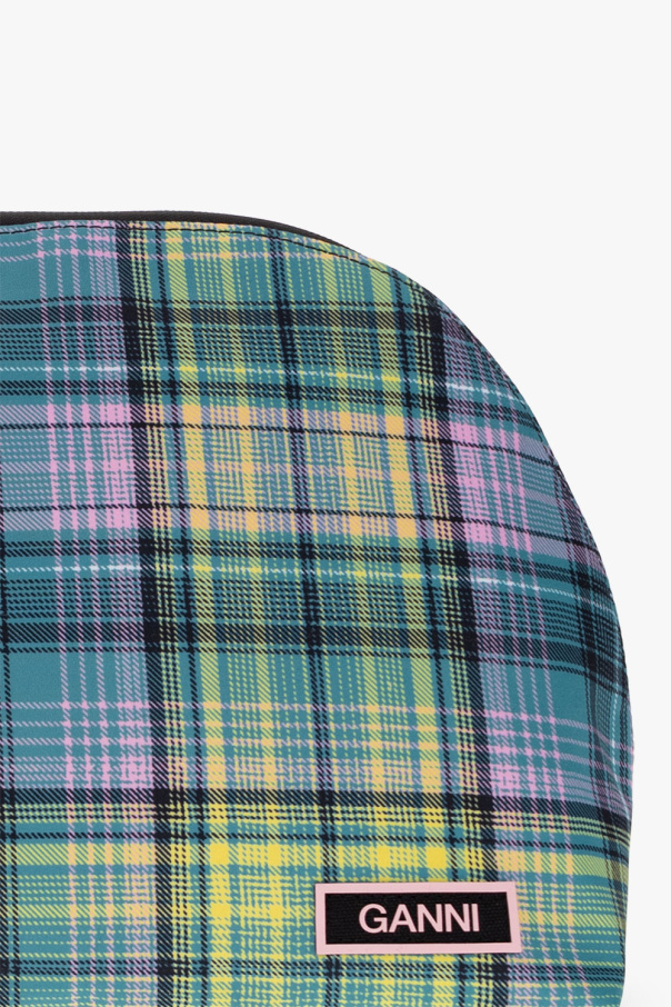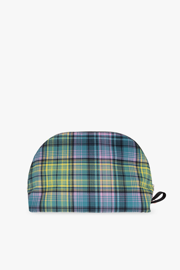 Multicolored wash bag from Ganni. Made of recycled materials, this design features a zip fastening, check pattern, logo patch and one internal compartment with one zip pocket.