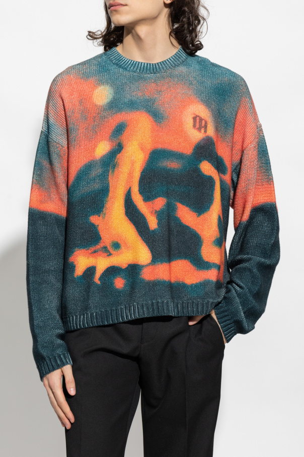 Green, orange and red sweater from MISBHV. Made of cotton, this long sleeve design is decorated thermal scanner images and has ribbed edges at the round neck, hem and cuffs.