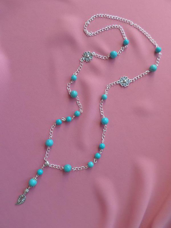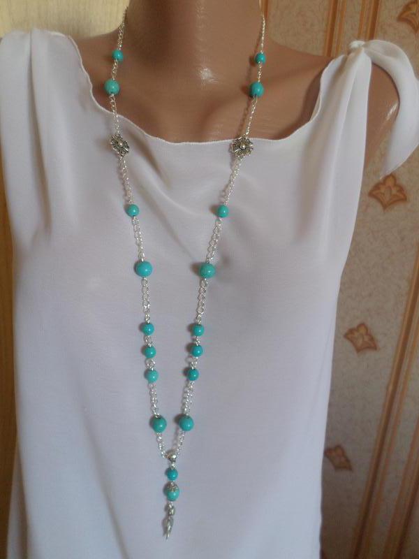Намисто зі штучної бірюзи, кольє з підвіскою. В єдиному варіанті, не повторюється. В подарунок упаковка з органзи. Намистини бірюза - 1 см і 0.8 см Довжина - 82 див. Підвіска - 7 див. Біжутерія на сайті: *******************