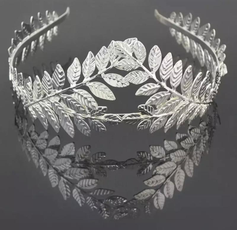 Новый лавровый венок в серебре, металл мягкий, подойдёт венок на разную голову, листочки можно выгнуть в сторону.