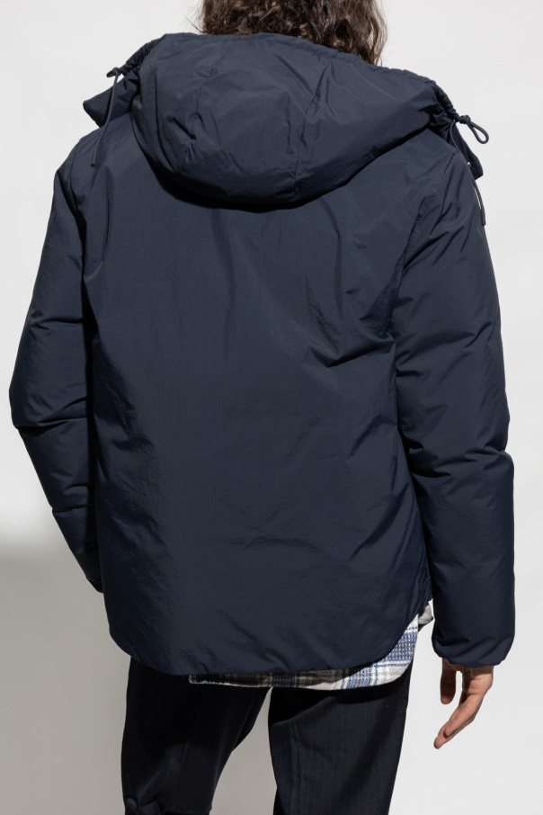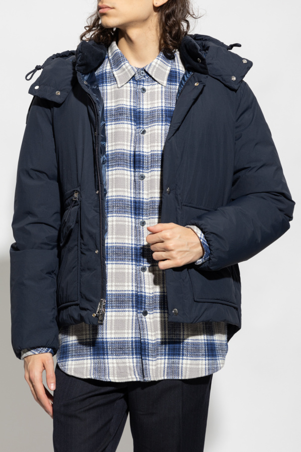 Navy down jacket from Woolrich. Fastened with a two-way zip and snaps, this garment features a logo-embossed appliqué, two flap pockets, one pocket with a concealed zip, drawstring hood and long sleeves with ribbed cuffs. Temperature range: 0°C/-10°C.