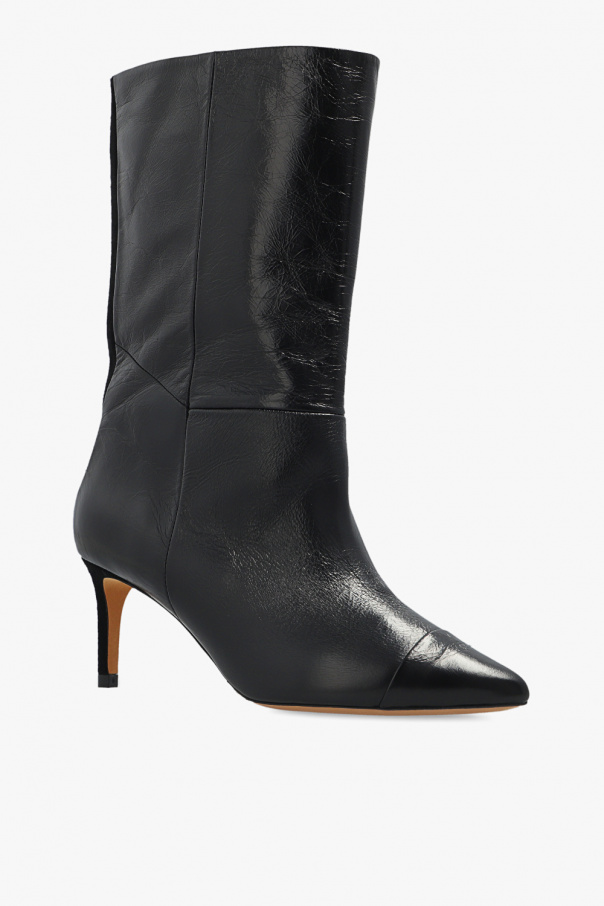 Black heeled ankle boots from Iro. Made of leather, this pointed toe design rests on a black leather sole.