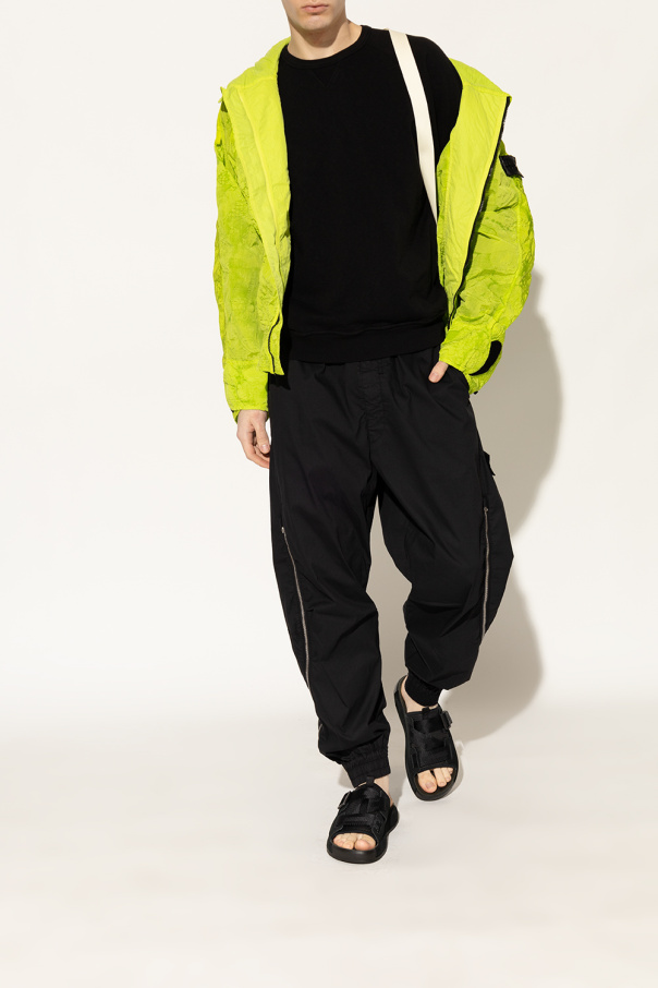 Black slides from Stone Island. Made of leather, this pair features a buckle strap, embossed logo and black rubber sole.