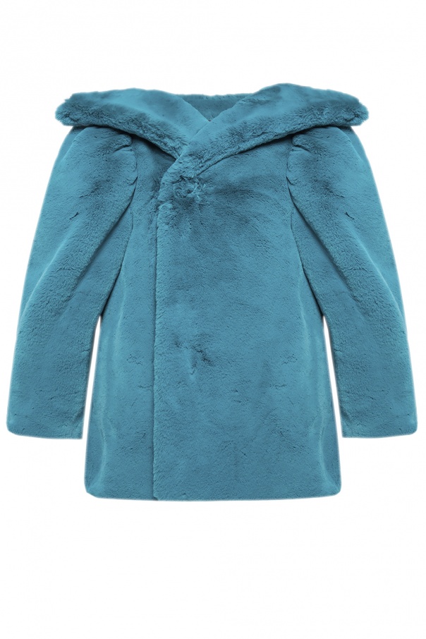 Blue jacket from Balenciaga. Made of faux fur. Button fastening. Features two slip pockets.