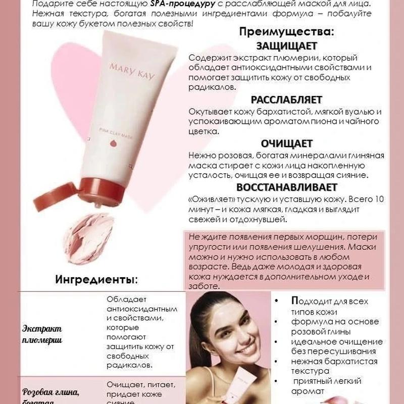 грязи и возвращает ей естественное сияние. Усвять это время себе и погрузиться в мечтательные ноты пиона и чайного дерева, которые ты почувствуешь при нанесении маски.☝️Основные преимущества маски с розовой глиной: