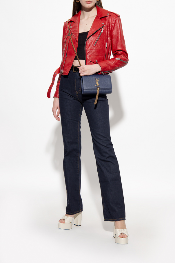 Cream ‘Bianca’ platform sandals from Saint Laurent. Crafted from lamb leather, this pair features an ajustable buckled ankle strap, decorative knot, block heel and black leather sole.