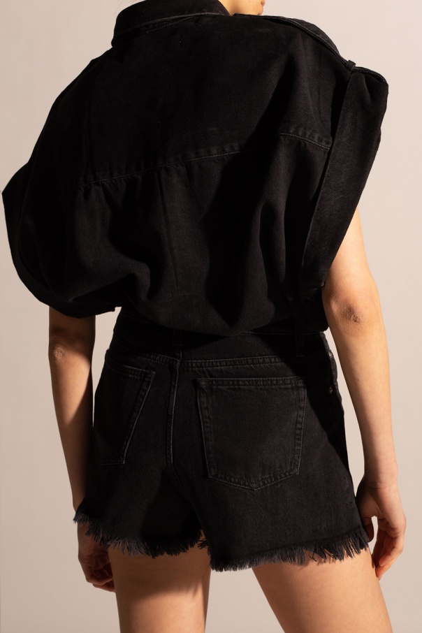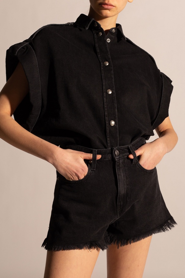 Black shirt from Iro. Crafted from cotton denim, this style features snap fastenings and short, rolled-up sleeves.