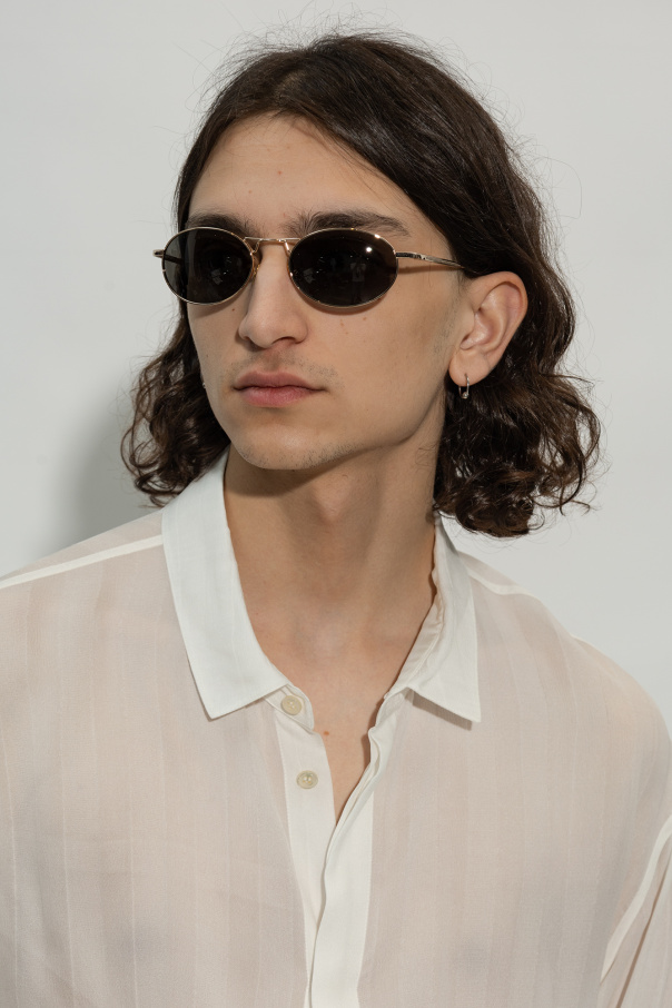 Gold-tone sunglasses from Etudes. Decorated with a transparent insert, this pair has grey lenses with 100% UVA/UVB protection. Case included.