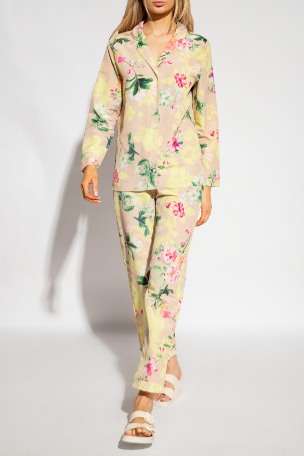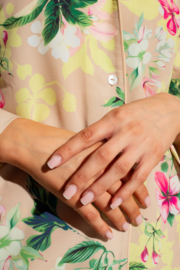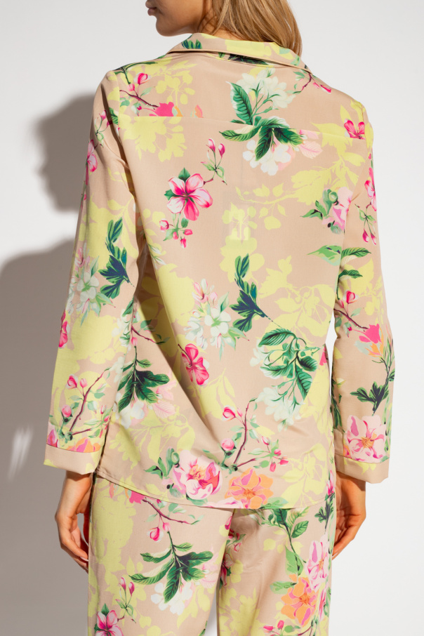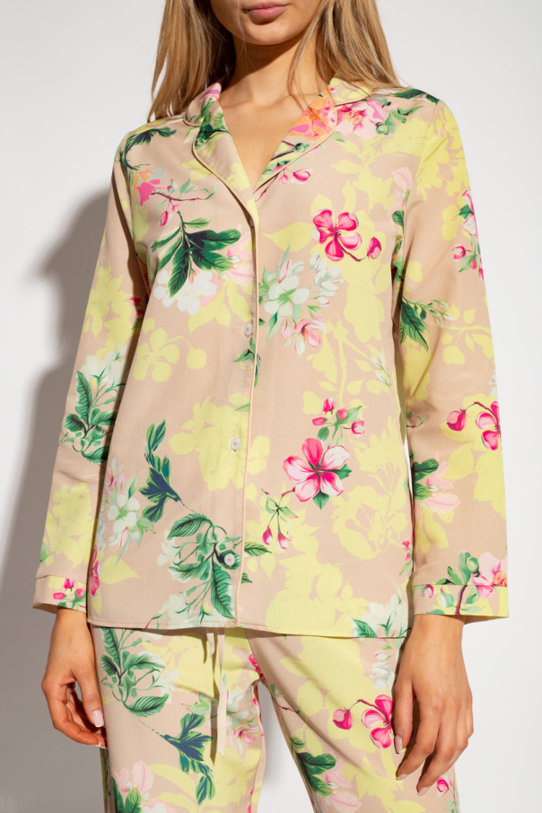 Beige pyjama top from Maison Lejaby, the ‘Nufit Garden’ line. Embellished with a colourful floral print, this style features button fastenings and long sleeves.
