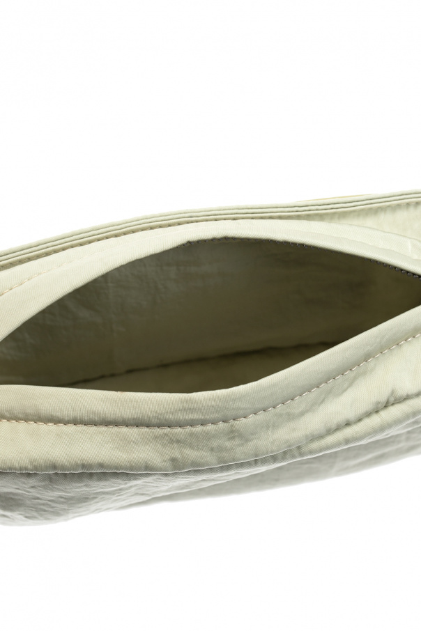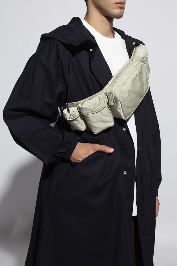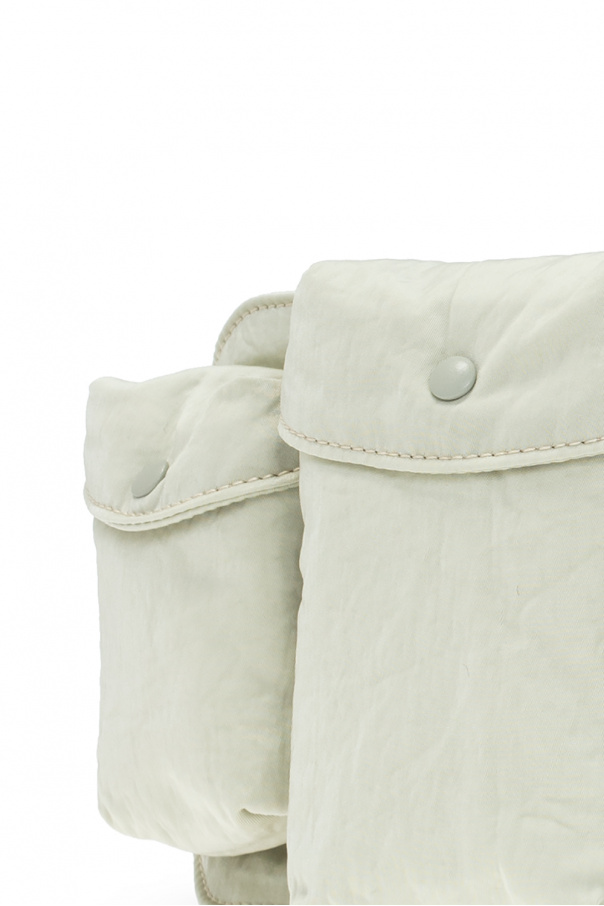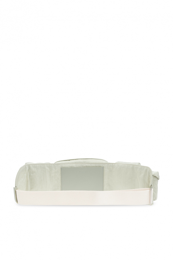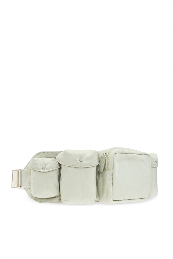 Light green belt bag from Jil Sander. This item features one zip pocket and four snap-fastened flap pockets on the front as well as a logo-embossed back pocket, adjustable cream belt and silver-tone metal hardware.