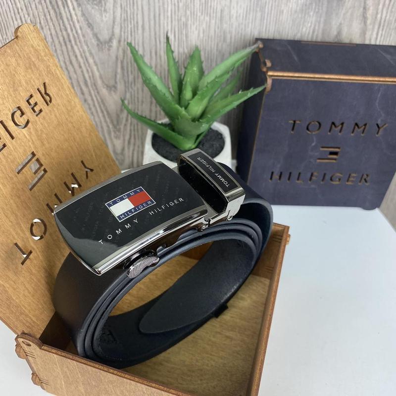 Мужской кожаный ремень автомат стиле Tommy Hilfiger, пояс из натуральной кожи
