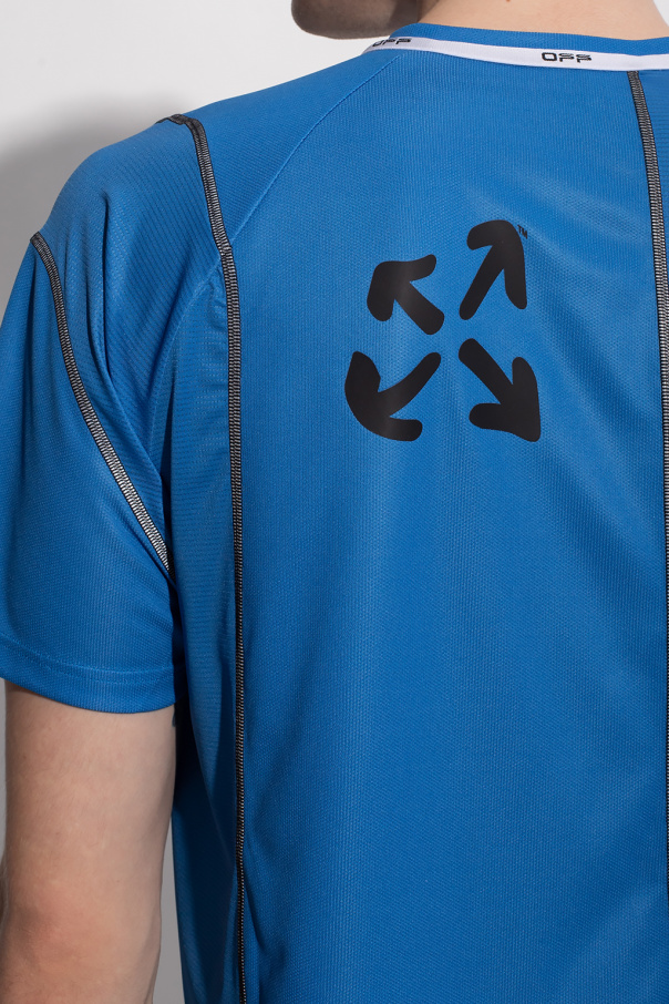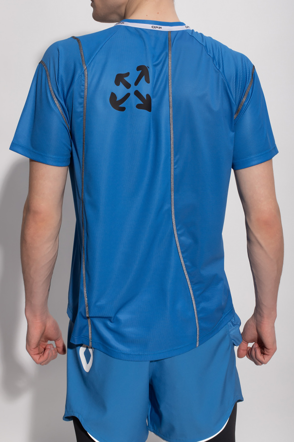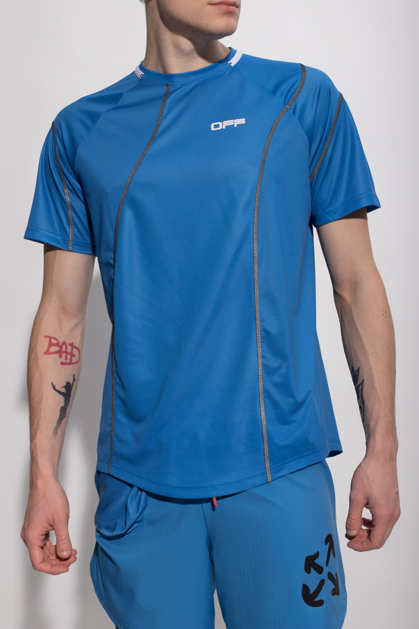 Blue crewneck T-shirt from Off-White, the ‘Active’ line. Printed with the brand's logo in white, this style features black seams and short sleeves.