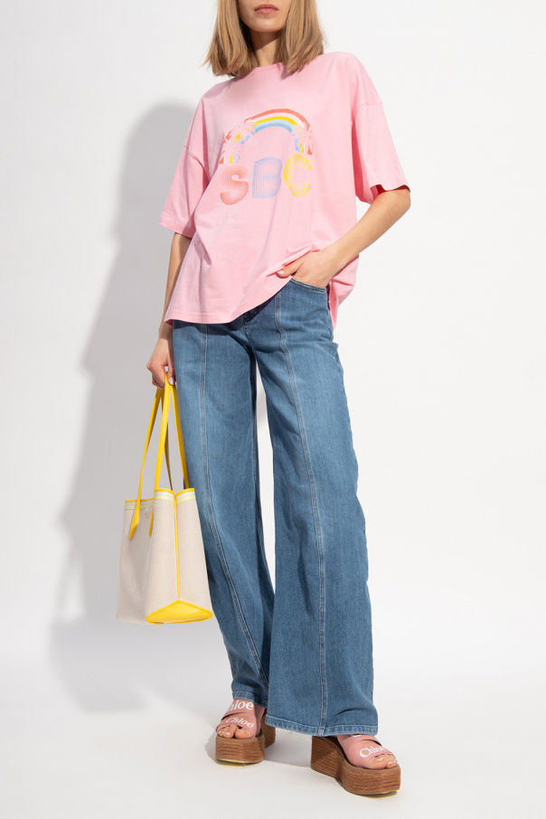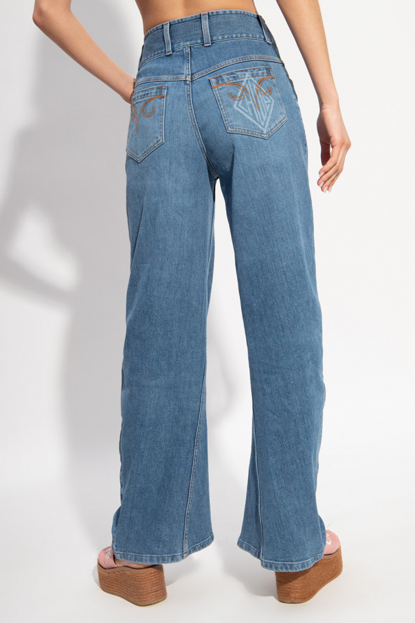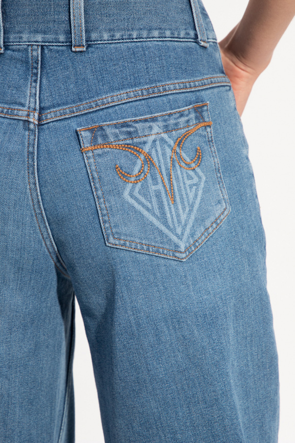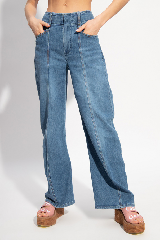 Blue jeans from Chloé. Boasting a high-waisted silhouette with wide, flared legs, this pair features a zip fly with a button and hook & eye closures as well as classic five pockets throughout.