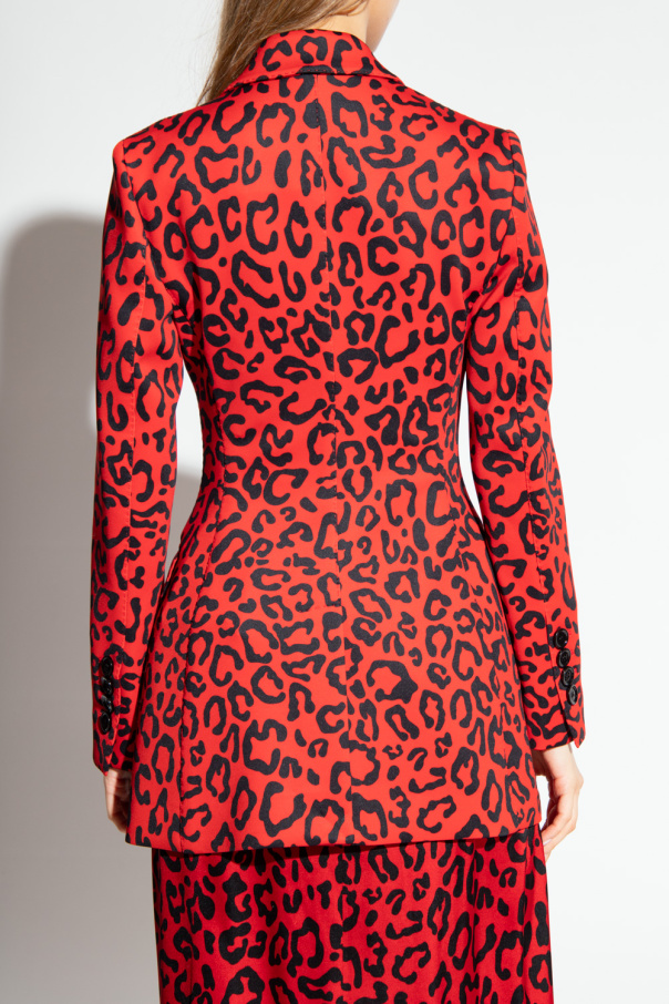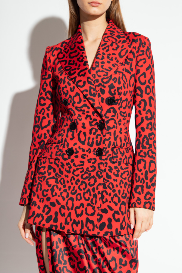 Red and black double-breasted blazer from Dolce & Gabbana. Fastened with buttons, this design features an animal pattern, peak lapels, two flap pockets, one slip pocket and long sleeves with buttoned cuffs.