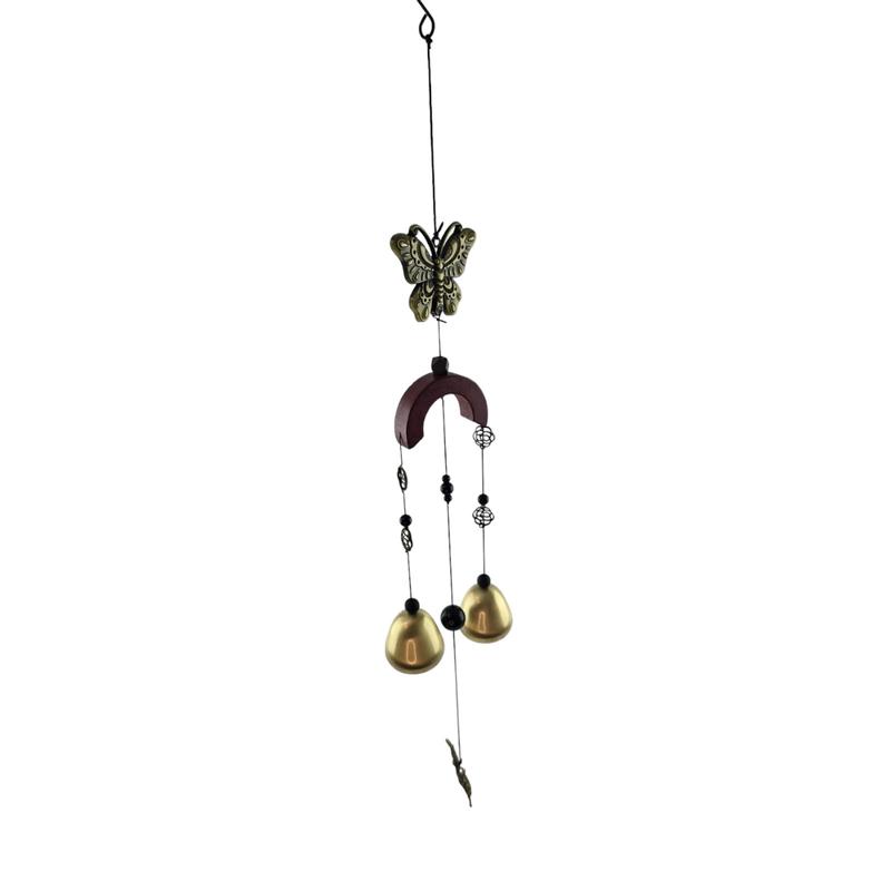 От дуги в трех направлениях расходятся разветвления, на каждом из которых расположены подвески с металлическими цветами и бусинами. По бокам украшений установлены бронзовые колокольчики ,которые создают чарующий звон при прикосновении ветру. Посередине подвески вы найдете черную бусину, придающую колокольчикам особую мелодичность.