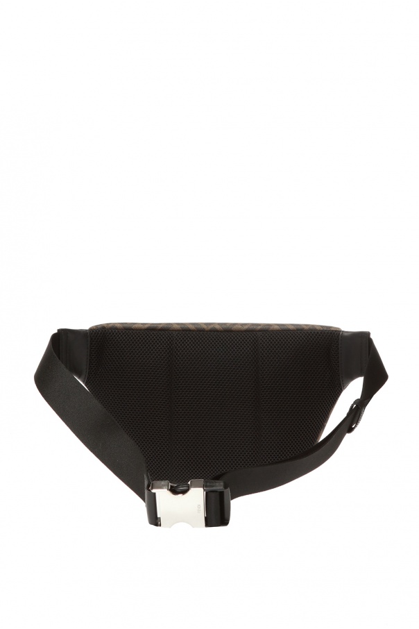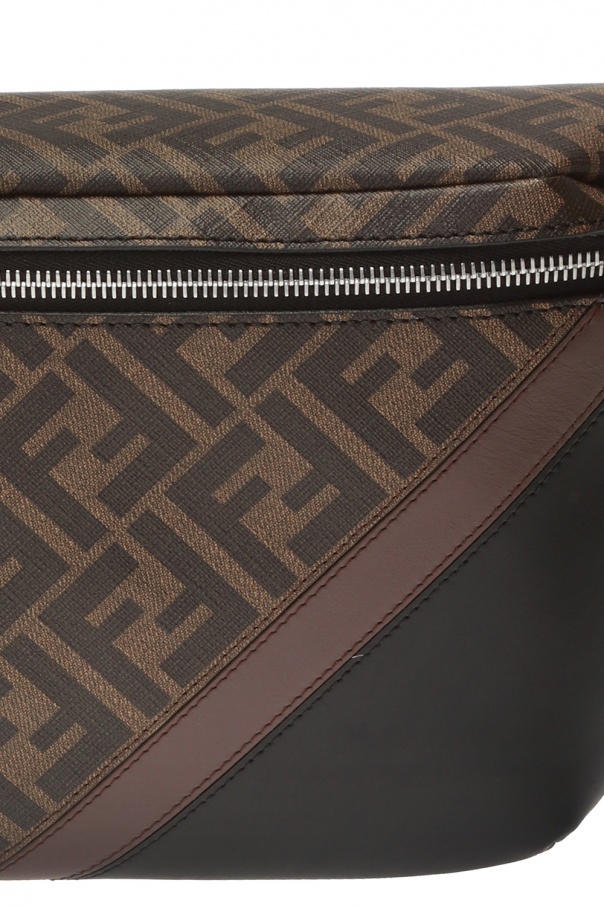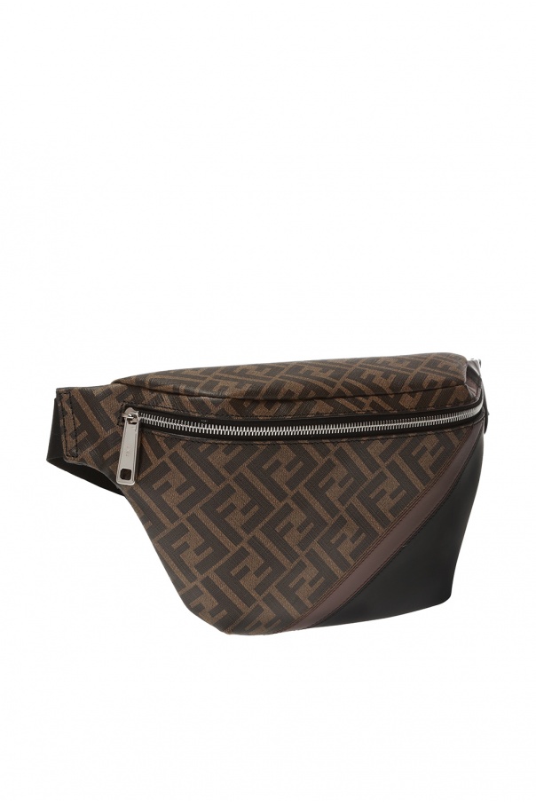 Brown and black belt bag from Fendi. Fastened via zip. Finished with calf leather. Fastened via zip. Embellished with printed pattern with Fendi logo. Features silver-tone metalware, an adjustable waist belt and interior with 1 compartment and 1 zip pocket inside.