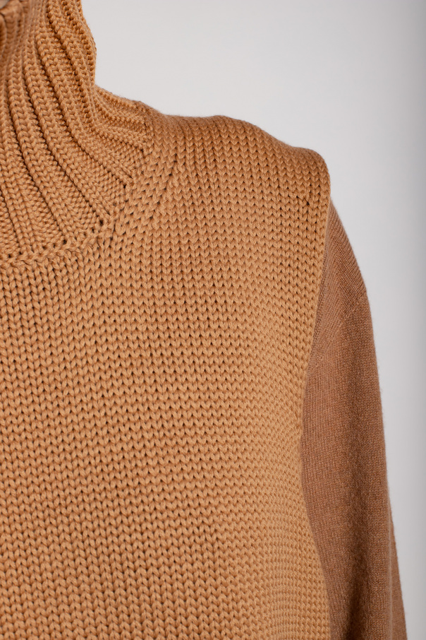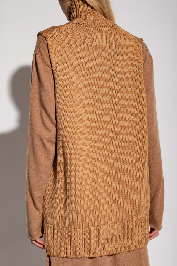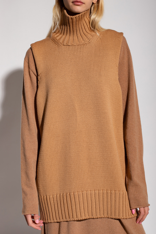 Beige vest from Jil Sander. Made of wool, this style features a relaxed silhouette with a high-neck collar and elasticized trims on the edges.