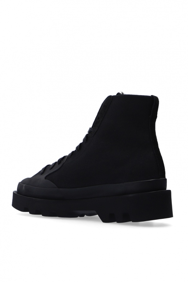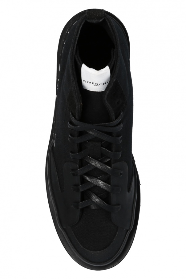 Black ‘Clapham’ platform shoes from Givenchy. Made of cotton, this lace-up model features a white logo print and black rubber sole.
