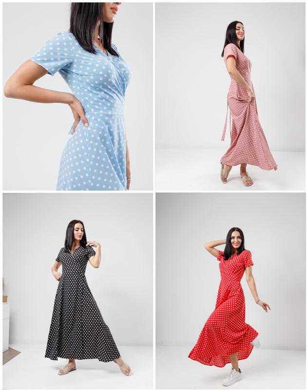 Зроблено в Україні?:Производство ,Сезон:Лето ,Принт:В горох ,Стиль:Повседневный ,Фасон:На запах ,Описание