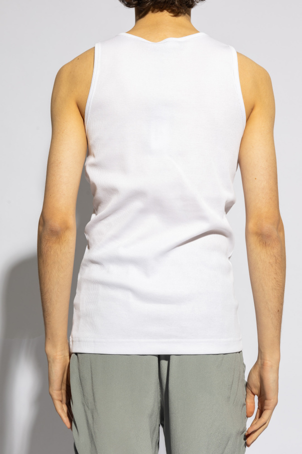White sleeveless T-shirt from Dolce & Gabbana. Crafted from ribbed cotton with a form-fitting silhouette, this style features a round neck accentuated with a sewn-on logo label.