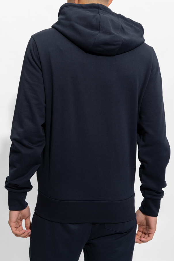 Navy hoodie from Moncler. Crafted from cotton, this garment features a two-way zip, embroidered monogram, two slip pockets, drawstring hood and ribbed trims at the hem and cuffs.