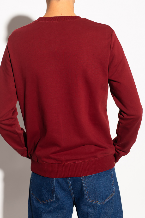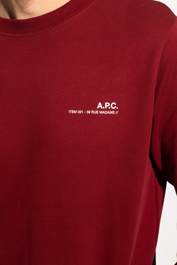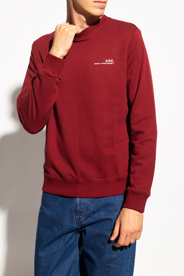 Maroon crewneck sweatshirt from A.P.C. Crafted from cotton, this garment features a printed logo pattern in white and ribbed trims at the neck, hem and cuffs.