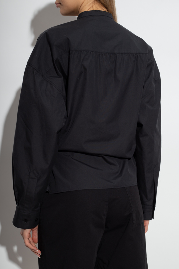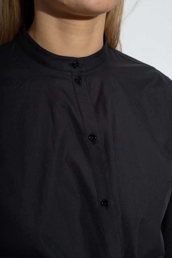 Black shirt with a high neck from Lemaire. Made of cotton, this design features asymmetric buttons and long sleeves with buttoned cuffs.