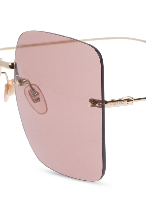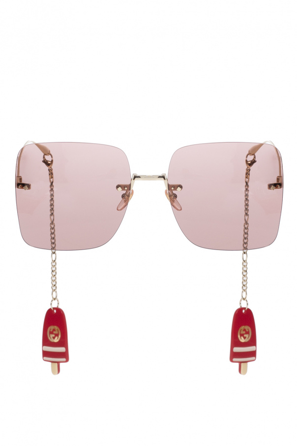 Gold-tone sunglasses from Gucci. This pair features a logo detail, detachable logo appliqués and red lenses with 100% UVA/UVB protection. The case color is individually selected for each pair of glasses.