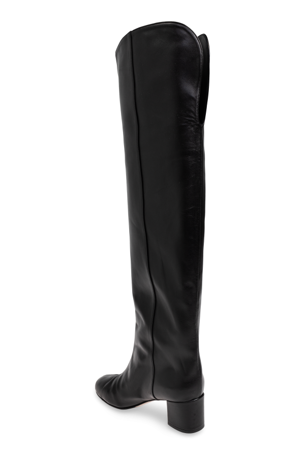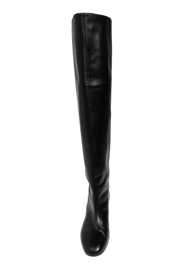 Introducing the exquisite Danielle Over-the-Knee Boots from the esteemed collection by Le Silla. These black boots epitomize luxury and sophistication, crafted from premium leather that exudes an air of opulence. The Danielle boots feature a sleek, over-the-knee design with a high shaft that extends above the knee, offering a refined and graceful silhouette. The boots are adorned with a medium-height, wide heel that ensures both stability and comfort. This heel is also enveloped in leather, maintaining the seamless elegance of the design. With rounded toes that contribute to their timeless appeal, these boots boast a smooth, unembellished surface that underscores their minimalist yet sophisticated style. Notably, there are no visible logos or inscriptions on the outer part of the boots, emphasizing the subtle elegance and focus on superior craftsmanship. Why Choose This Product? Luxurious Materials: Made from high-quality leather inside and out, with a durable leather and rubber sole. Elegant Design: Over-the-knee length with a simple, classic shape that complements any outfit. Comfort and Stability: Medium-height, wide heel for all-day comfort and support. Timeless Appeal: Smooth, unadorned surface with rounded toes for a classic look. Renowned Brand: Crafted by Le Silla, known for their exquisite attention to detail and use of the finest materials.