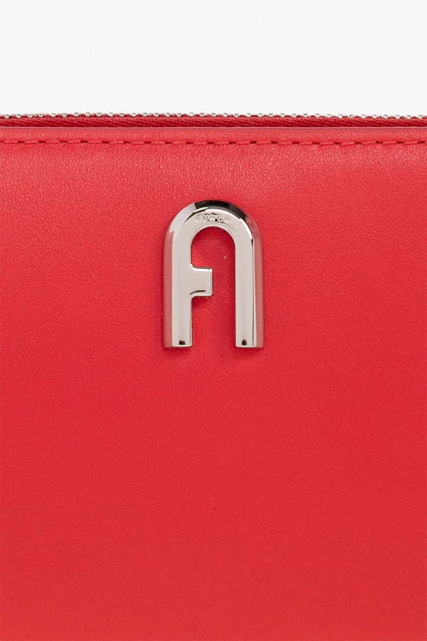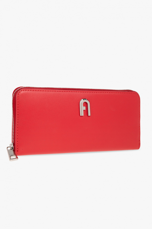 Red ‘Moon XL’ wallet from Furla. Made from calf leather, this design features a zip-around fastening, a logo-shaped application on the front, silver-tone metal hardware and two bill compartments, one zip coin pocket, two slip pockets and eight card slots inside.