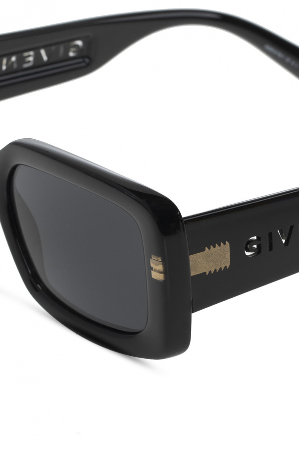 Black sunglasses from Givenchy. Enriched by a gold-tone metal insert and a transparent logo on the temples, this pair comes with a branded case and features certified lenses with UV protection.
