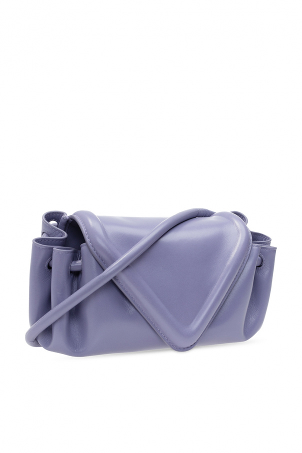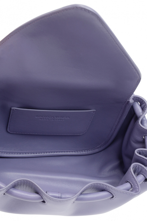 Purple ‘Beak’ shoulder bag from Bottega Veneta. Size small. Crafted from lamb leather, this design fastens via a magnetic snap and features one internal compartment with a card slot.