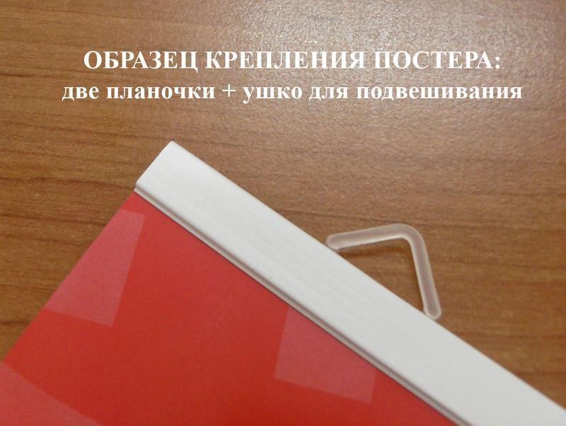 Вставить плакат в прорезь планки (одна планка сверху, одна снизу плаката).
