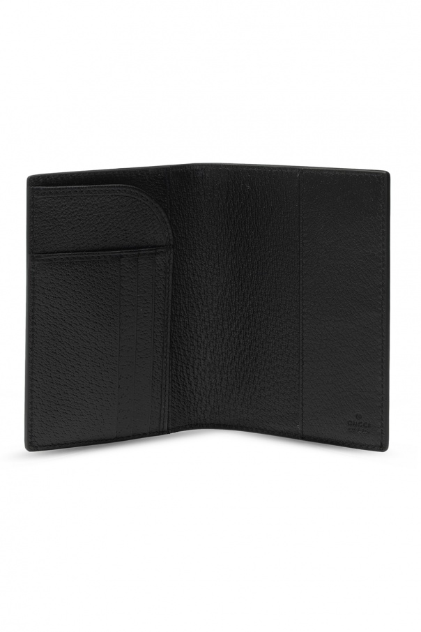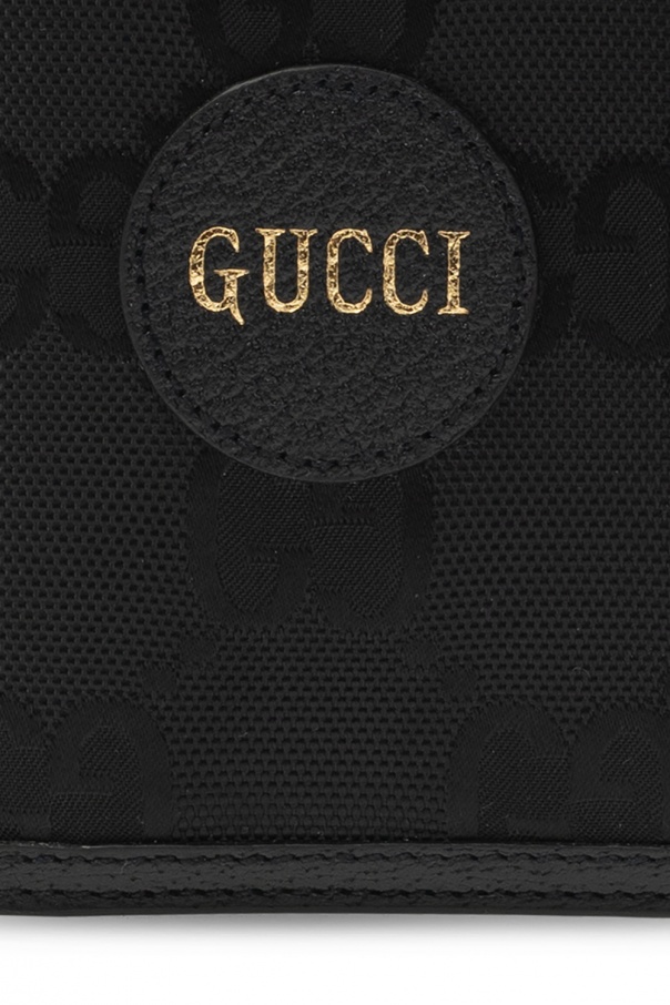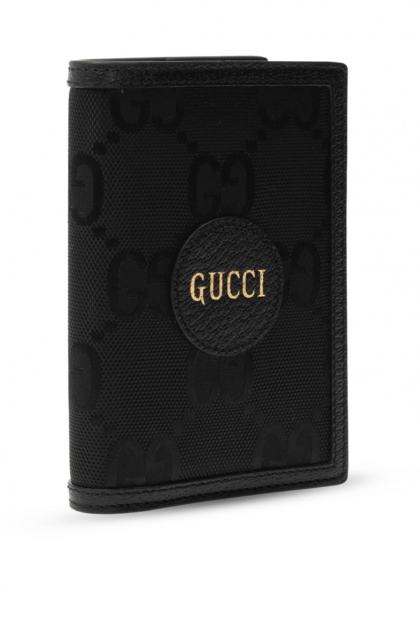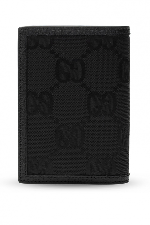 Black wallet from Gucci. This item is produced from recycled materials with black leather trims and enriched with a GG motif made from ECONYL® and a gold-tone logo print. It has four pockets and three card slots inside.