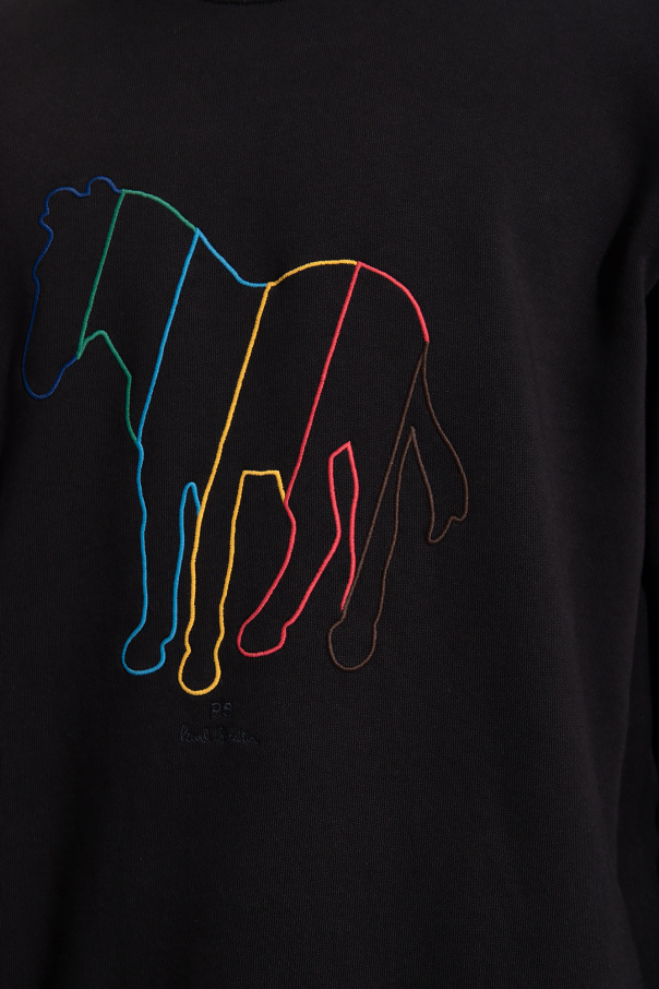 Black crewneck sweatshirt from PS Paul Smith. Crafted from cotton, this long sleeve design features the brand’s signature, embroidered zebra motif and ribbed trims at the hem and cuffs.