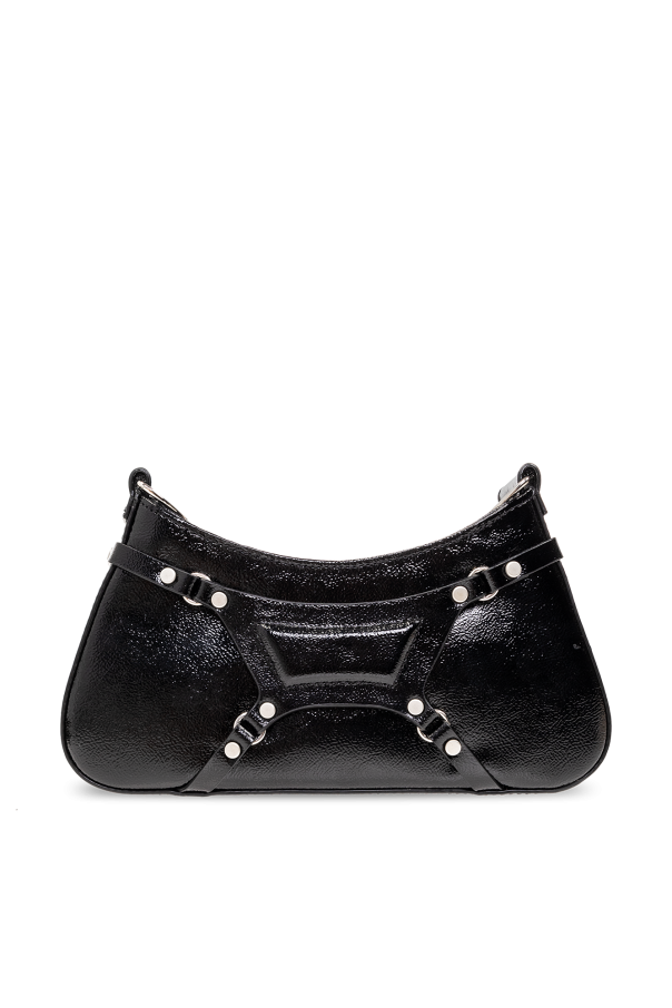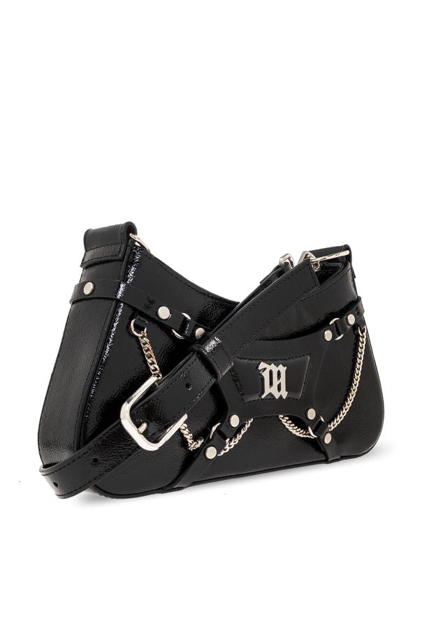 Black ‘Fetish’ shoulder bag from MISBHV. Made from leather, this design secures with a zip and showcases a monogram application and chain detailing. It is complete with a detachable and adjustable shoulder strap, silver-tone metal hardware and one internal compartment.