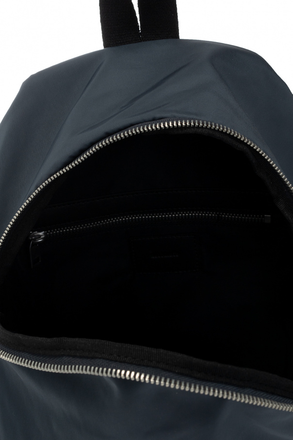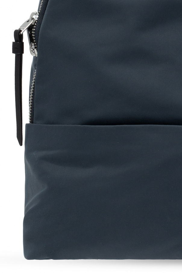 Navy and black ‘Olena’ backpack from AllSaints. Fastened with a two-way zip, this item is complete with two front zip pockets, half-round handle, adjustable shoulder strap, silver-tone metal hardware and one internal compartment with one zip pocket and one slip pocket.