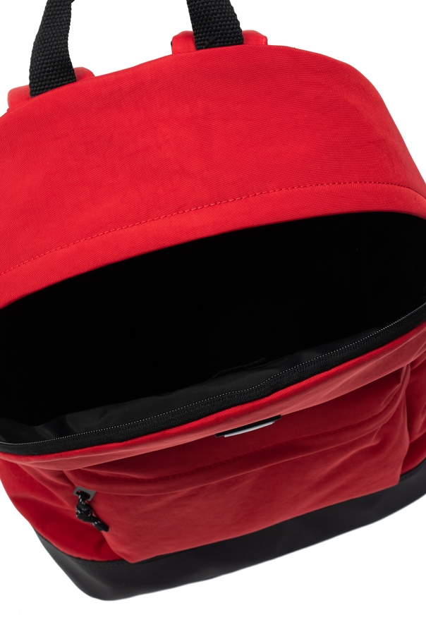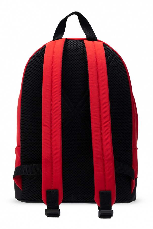 Red ‘Violano’ backpack from Diesel. Boasting a rubberised logo patch in black and white, this design fastens via a zip and features an external zip pocket on the front, a half-round handle, adjustable shoulder straps and interior with one compartment, one slip pocket and one snap-fastened pocket.