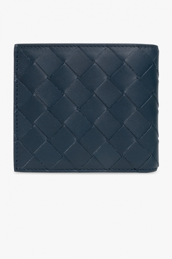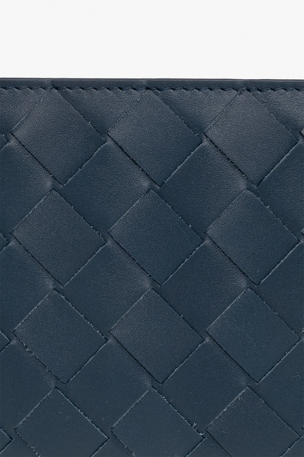 Navy blue folding wallet from Bottega Veneta. Crafted from calf leather with the brand\'s iconic Intrecciato weave, this design features two bill compartments, two slip pockets and six card slots.