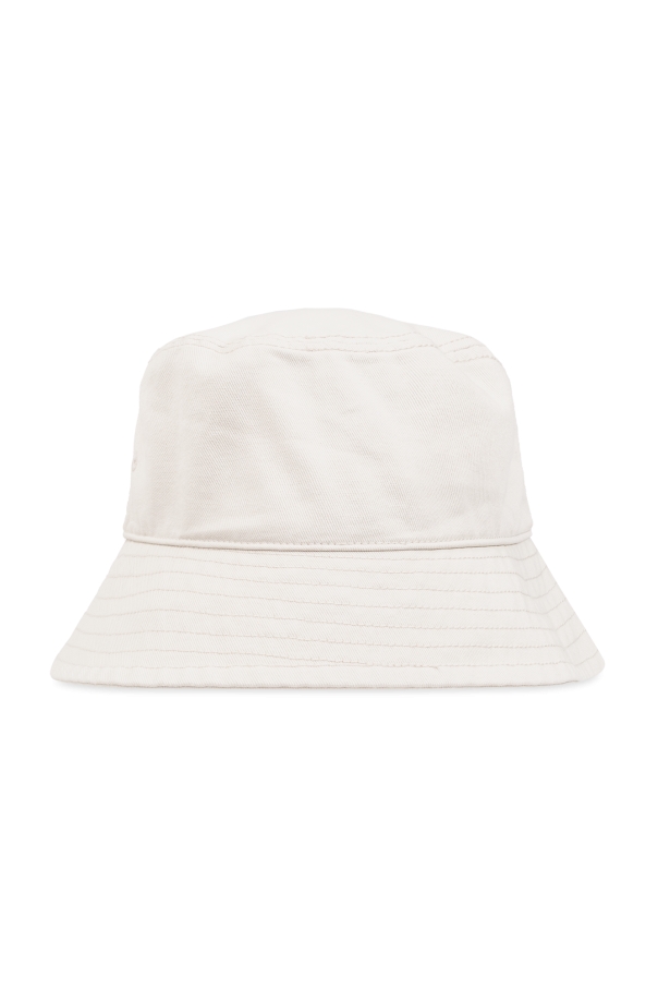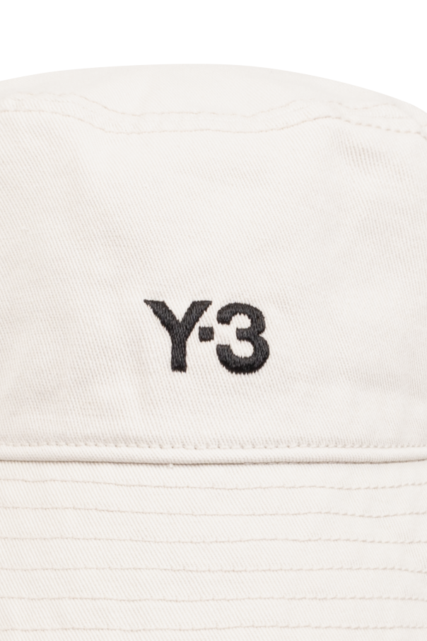 Cream bucket hat from Y-3 Yohji Yamamoto. Made from cotton, this item showcases an embroidered black logo.