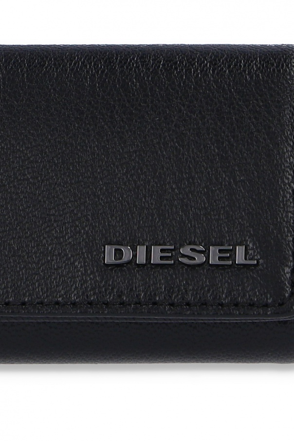 Black key holder from Diesel. Crafted from sheep leather, this accessory features snap fastenings, a metal logo detail, two slip pockets, six snap hooks and two keyrings – one removable.