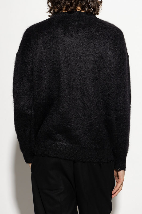 Black sweater from Saint Laurent. Made of a blend of mohair and wool from sustainable sources as well as recycled fabric, this item features ribbed trims with distressed detailing and a jacquard 90's-inspired Playboy motif (TM & © 2022 PLAYBOY).