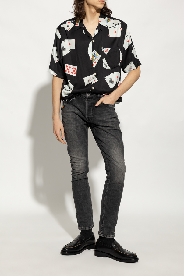 Black ‘Dalias’ loafers from AllSaints. Crafted from smooth leather, this model features decorative stitching details and a black rubber sole accentuated with metal studs.