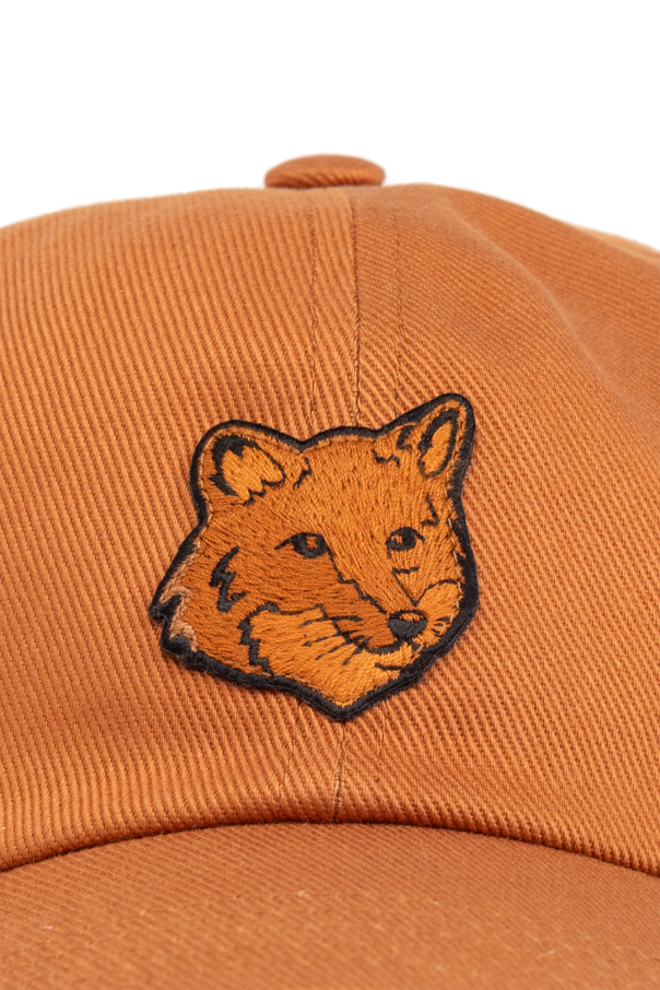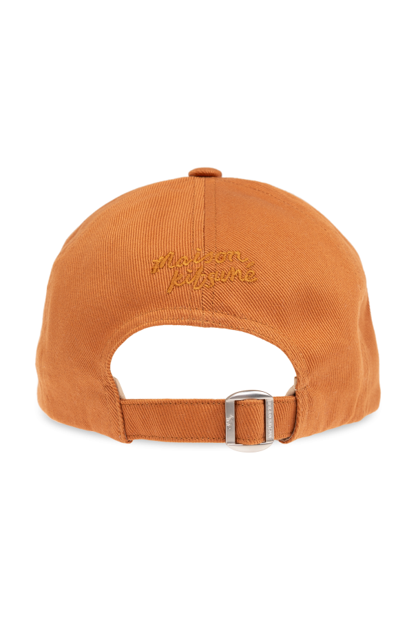 Brown baseball cap from Maison Kitsune. Made from cotton, this item adjusts via a buckle strap on the back and showcases a logo-shaped patch on the front.