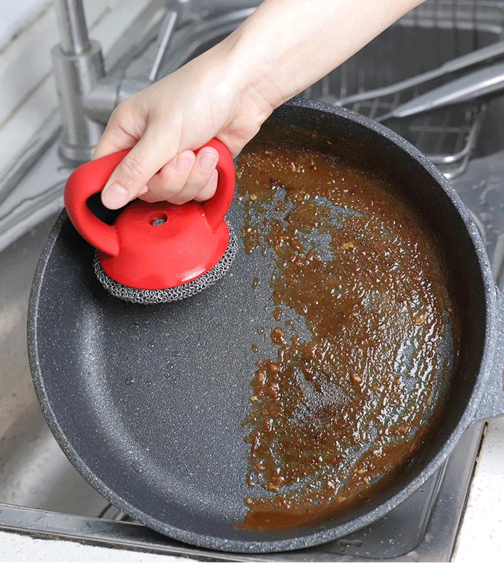 мочалка с ручкой кухонная для посуды Металлическая щетка с ручкой для чистки