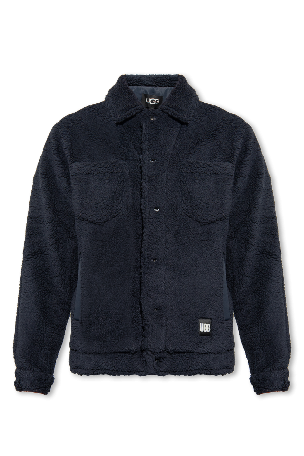 Navy blue ‘Janson’ jacket from UGG. Made with the brand\'s signature UGGfluff™ sherpa fleece, this style features a logo patch, button fastenings, two frontal pockets and long sleeves with button cuffs.