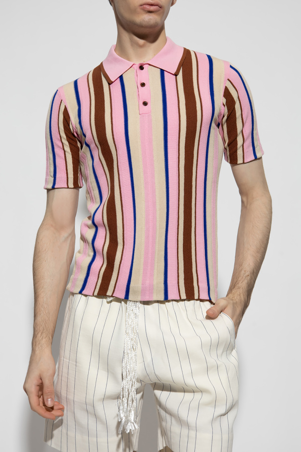 Multicolored ‘Optimist’ polo shirt from Wales Bonner. Made of cotton, this short sleeve design features buttons at the neck and vertical stripe pattern.